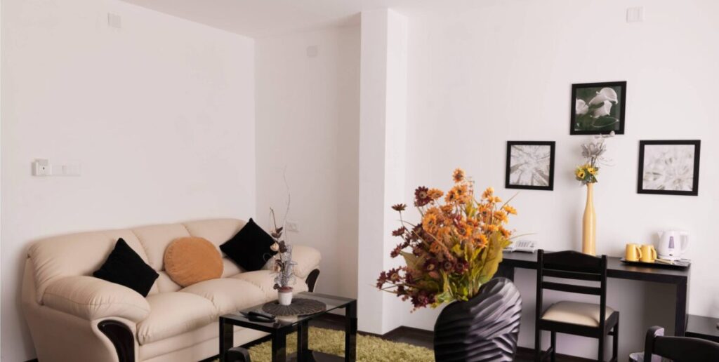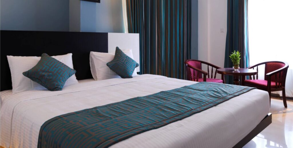 At Hotel Aquarock, We like pampering you and our suites radiate an aura of pure luxury and the epitome of getting yourself pampered, the way you deserve to be. 510 sq.ft, Air Conditioned Rooms King Size Bed Room with Living area and well equipped Shower Cubicle toilet.
